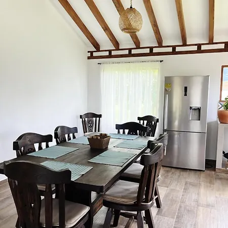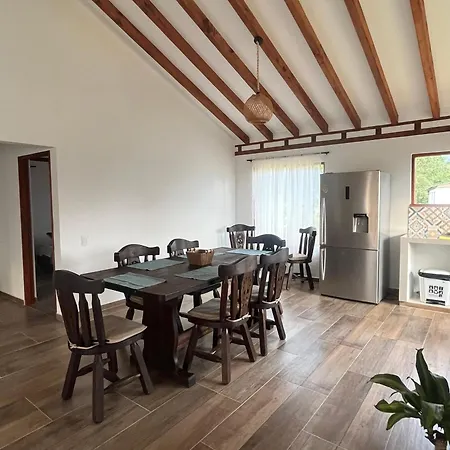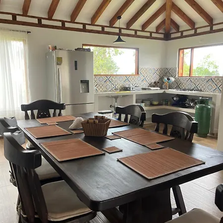 This Villa de Leyva property is equipped with a fridge and kitchenware for self-catering in a dining area.